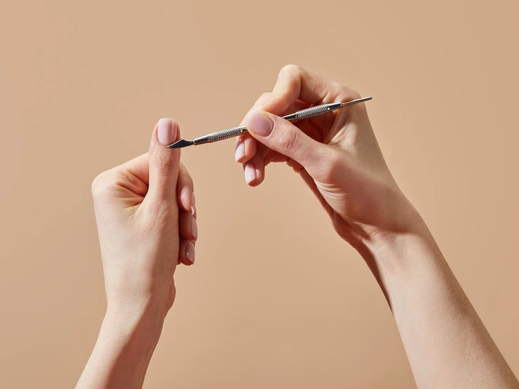 Далее возьмите масло для кутикулы и апельсиновую палочку. Чтобы не создавать ранок вокруг ногтей, увлажните кожу маслом для кутикулы, затем пройдитесь палочкой по краям и аккуратно отодвиньте кутикулу, не срезая ее. Масло для кутикул — необходимое средство в вашей дорожной косметичке. Вообще пользоваться им важно круглый год, а еще лучше — ежедневно. Масло для кутикулы продлит и стойкость лака (читайте также: «Пять очевидных (и не очень) вещей для ухода за кутикулой»).