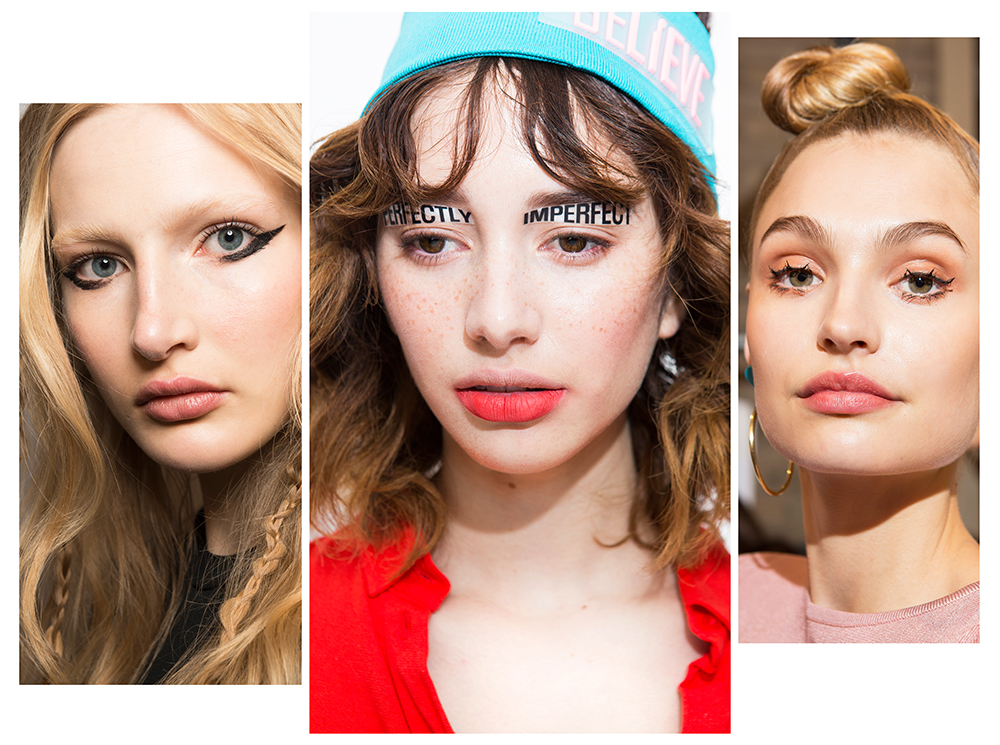 Стрелки по нижнему веку ─ один из самых ярких трендов макияжа, которые мы увидели в Нью-Йорке. Особенно выделяем те, что были замечены на показе Jill Stuart: жирные, черные, бунтарские ─ эдакий «кошачий глаз» наоборот. Общий фон для такого безобразия ─ идеально-нейтральный (легкий тональный флюид, натуральные брови и один слой туши на верхних ресницах).