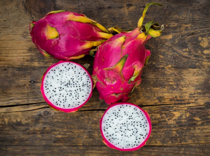 Питайя, или «драконов фрукт» растет в южной Мексике и, внимание, имеет общее происхождение с кактусами. Собственно, по виду плоды питайи и напоминают кактус розового цвета, внутри которого находится белая мякоть. В зависимости от вида, варьируется размер плодов, цвет мякоти (белый, розовый, пурпурный), цвет кожицы (от желтого до оранжевого, от красного до алого) и фактура поверхности фрукта (с небольшими выростами, с тонкими цветными чешуйками). Мякоть плодов сладкая и наполнена маленькими черными косточками.