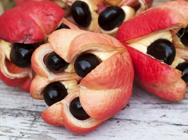 Противопоказания: незрелые плоды содержат яд ─ гипоглицин. Его присутствие в организме человека может вызвать ямайскую рвотную болезнь или сильное отравление. Поэтому при употреблении фрукта необходимо строго соблюдать два простых правила: не есть незрелые или сырые плоды и получше ознакомиться со способами их приготовления.