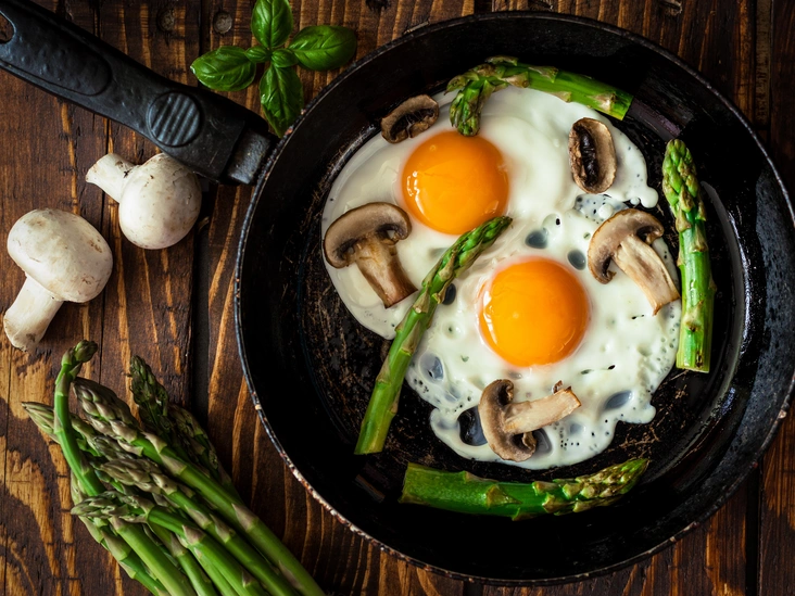 Насыщать организм витамином B12 лучше всего во время завтрака, потому что этот нутриент содержится в яйцах. Яйца — источник многочисленных полезных элементов, в том числе белка, кальция, фосфора, витаминов А, К, Е и B12. Они способны поддерживать здоровый уровень холестерина, укреплять кости и мышцы и даже способствовать похудению (читайте также: Что произойдет, если есть по 3 яйца каждый день). При этом с точки зрения насыщения организма полезными нутриентами способ приготовления, будь то вареное яйцо, пашот, омлет или глазунья, значения не имеет. Тут можно ориентироваться на собственный вкус и выбирать любой рецепт, содержащий желтой яйца.