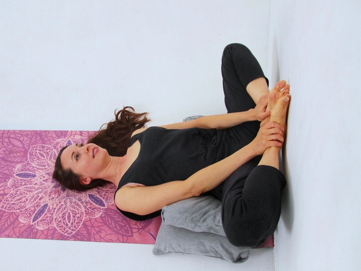 Перевернутыми позами. К ним можно отнести любую позу, в которой таз оказывается выше уровня головы. Рекомендуем начинать с простых вариантов — например, можно положить под таз подушку, а ноги поднять на стену.