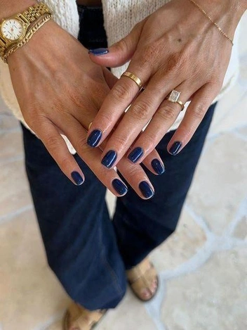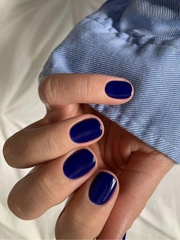 Эта гамма стала альтернативой черному для тех, кто ищет глубину без жесткости. Чернильно-синий оттенок напоминает насыщенные чернила и дает ощущение многослойности. Его преимущество в том, что он менее требователен к форме и длине ногтей, чем черный, и на сколах выглядит менее заметным. В сатиновом финише он мягче и благороднее, в глянце — динамичнее и современнее.