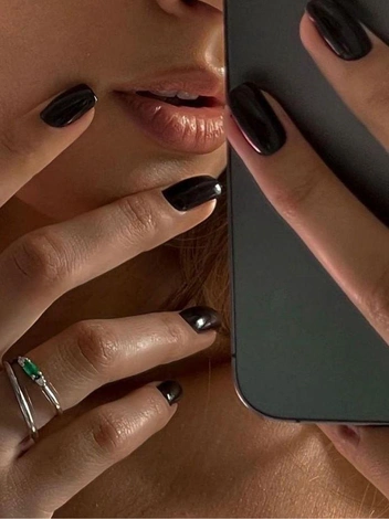 В моде сейчас спокойная выразительность. Лак подбирают так же внимательно, как ткань пальто или оттенок помады. В палитре сезона — глубокие винные, сливовые, насыщенные коричневые, хвойные и чернильные оттенки. Они помогают собирать образ и создают визуальные опоры. Рядом с ними остаются полупрозрачные нюдовые покрытия, которые работают за счет правильного тона и мягкой прозрачности.