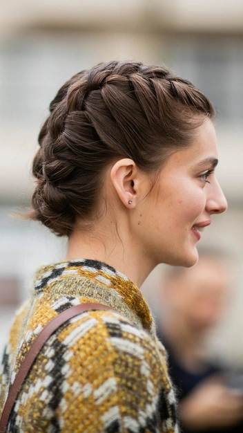 Французские девушки питают слабость не только к коротким стрижкам и небрежным укладкам, но и к элегантным сдержанным вариантам. К последним относится французская ракушка — прическа, в которой волосы аккуратно собраны на затылке и закреплены шпильками. Этот вариант отлично подойдет для вечерних светских выходов и официальных мероприятий. А если дополнить его строгим облегающим платьем и жемчужными аксессуарами, у вас получится полноценный стильный лук во французском стиле.