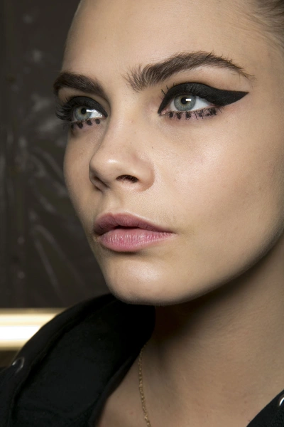 Осенью невозможно обойтись без стрелок. Классические стрелки, какие показали Dolce & Gabbana, мы носили всегда. Но можно отступить от традиций. Теперь стрелки взмывают ввысь, загибаются в дугу, удлинняются чуть ли не до самого виска и проходят не по линии роста ресниц, а над веком. Кстати, стрелки могут быть и серебряного цвета, будто нарисованные инеем.