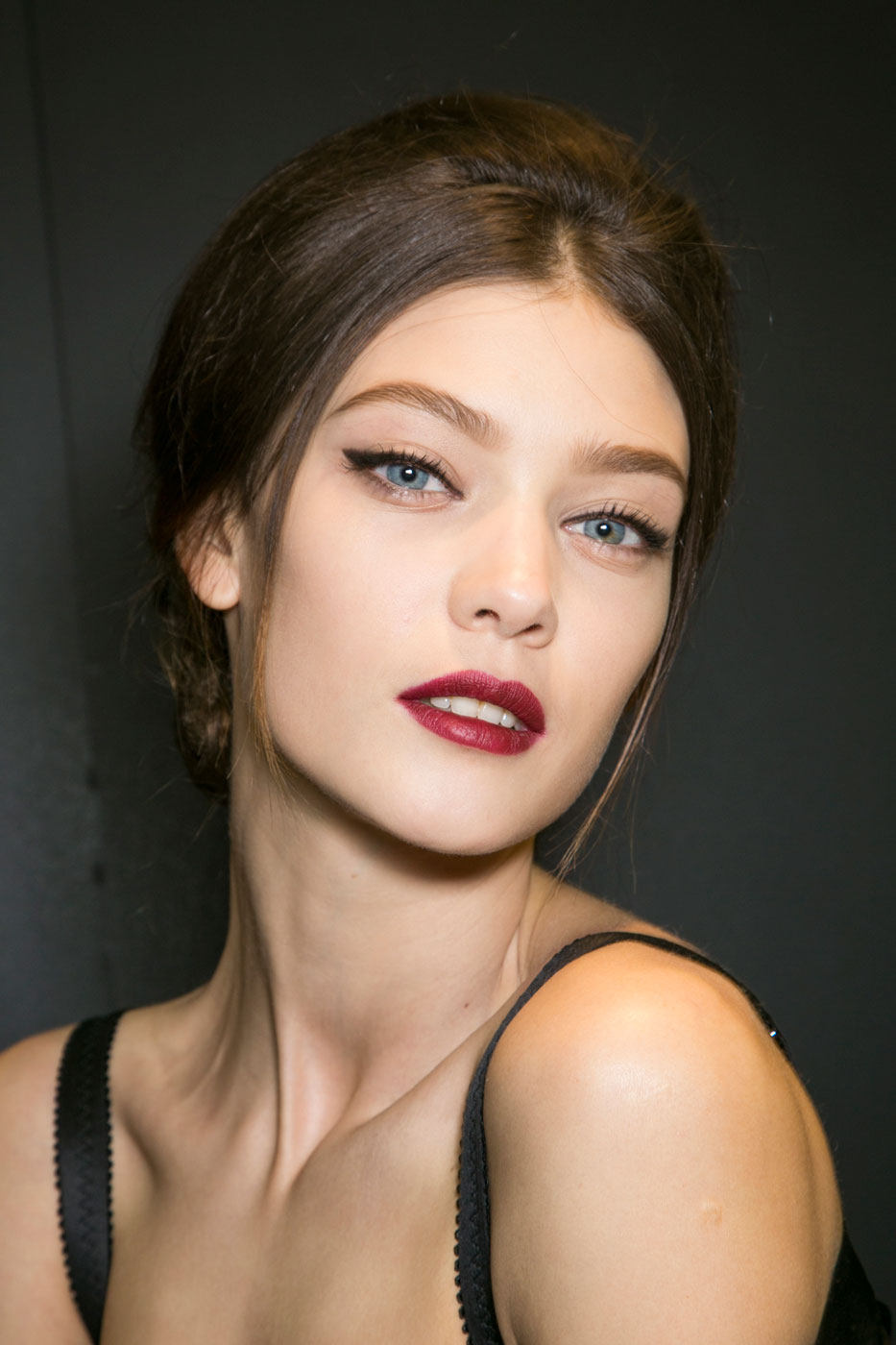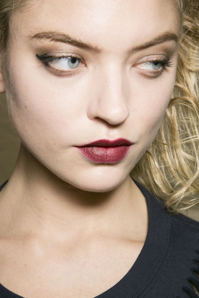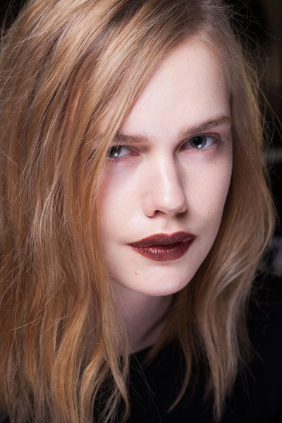 Другой модный тренд, который достаточно безопасен и днем и вечером, – яркие матовые губы. Казалось бы, все это мы видели уже давно и носили летом. Но ближе к холодам оттенки помад стали более глубокими и темными. Такие губы были у моделей на шоу Marni, Fendi и Diane von Furstenberg. Визажисты также предложили вариант с эффектом «обкусанных» губ, где они сочетали два цвета с переходом от светлого по центру к темному по краям. Так делали на показах Louis Vuitton и Miu Miu. Для модного вечернего образа стоит выбрать шоколадный оттенок губ, как у 3.1 Phillip Lim.