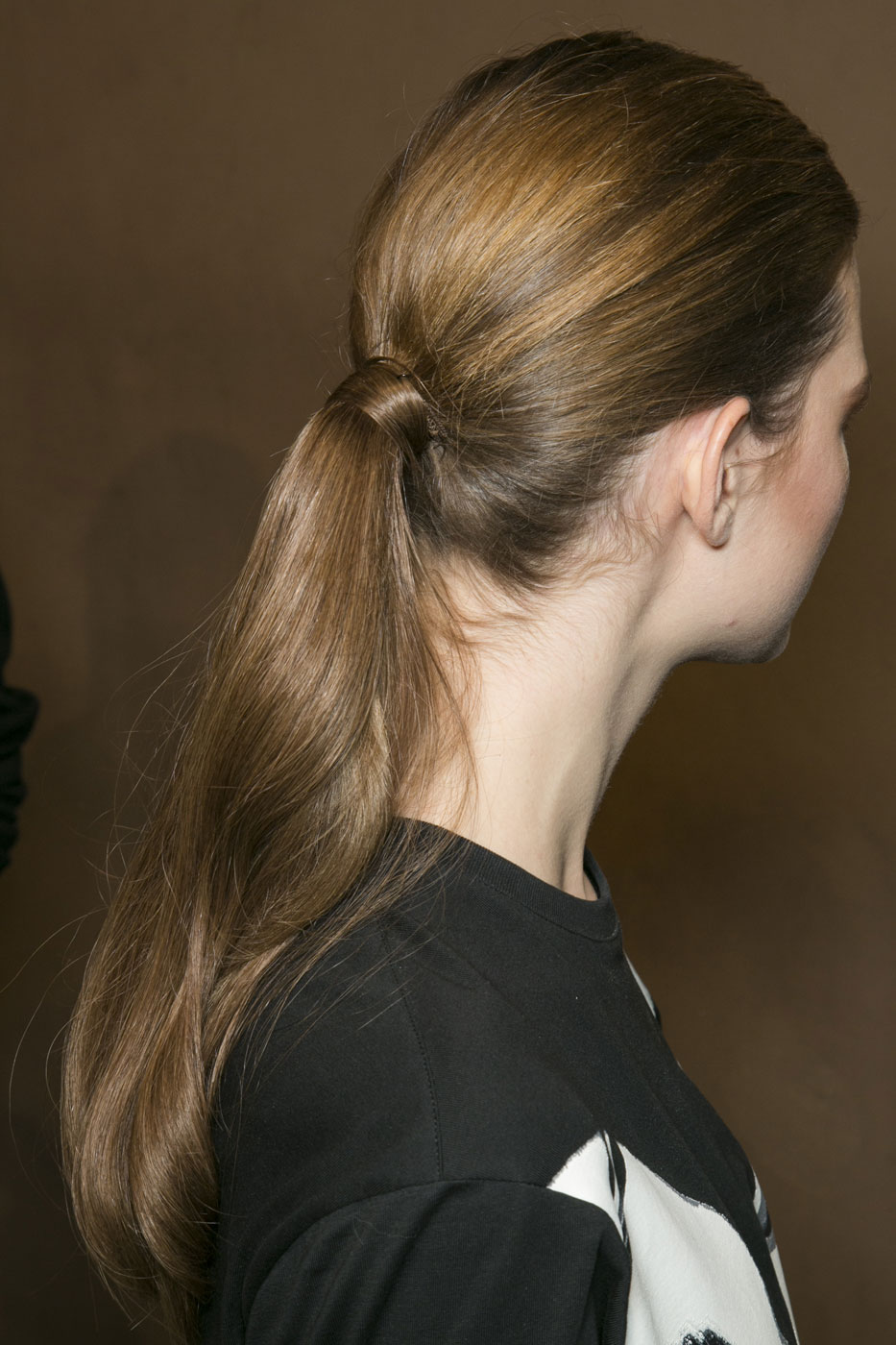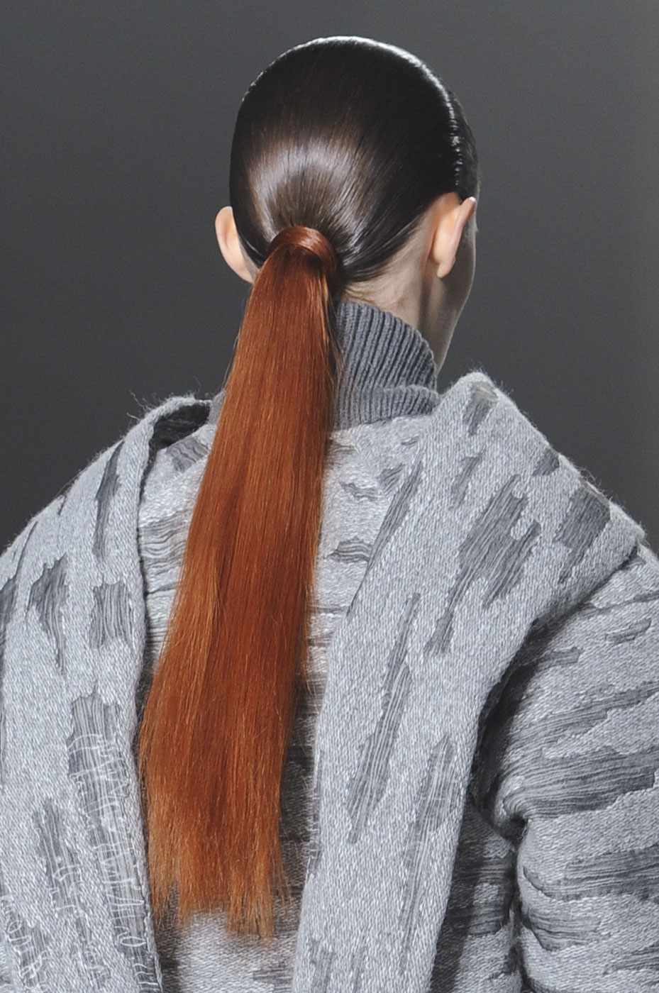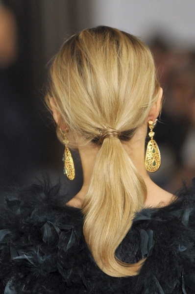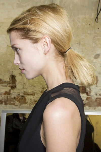 Низкий конский хвост – еще один приятный бьюти-тренд осени-2013. Он выглядит более сдержанно, чем завязанный на макушке. Прическа простая, но вариантов для моделирования множество. На показе Ralf Lauren стилисты сделали из хвоста вполне себе вечернюю прическу. Disquared2 и Chalayan показали два абсолютно разных дневных образа с одним и тем же pony-tail. Alexander Wang подошел к простой прическе более радикально, выкрасив волосы в два цвета.