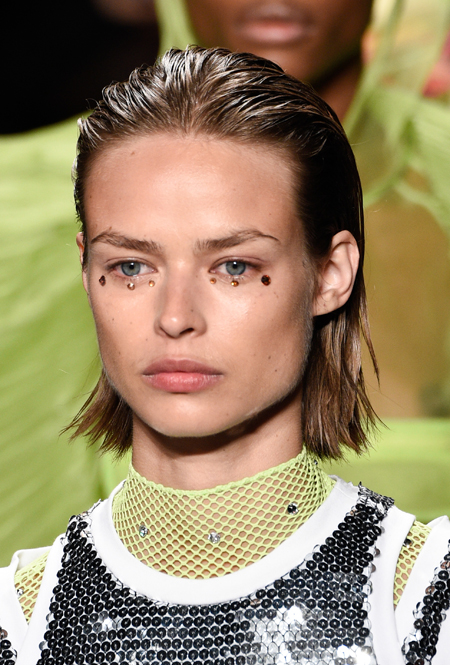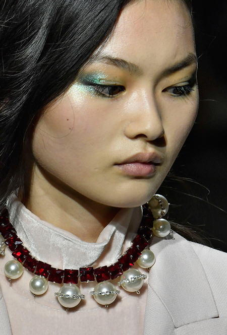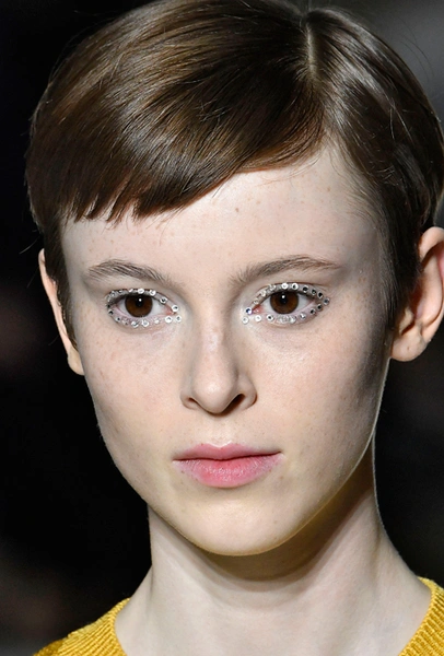 Все четыре модных Недели визажисты буквально сходили по нему с ума, и мы можем твердо сказать, что в новом сезоне будем блистать (надеемся, все же не блестеть). Глаза нам предлагают сделать настоящей драгоценностью – и это не просто слова, а плотное покрытие в виде пигмента с глиттером и стразы (их сочетание с украшающими наряд пайетками, как у Jeremy Scott, производит просто ослепительный эффект).