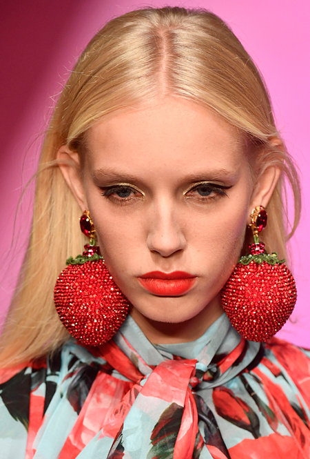 Губы летом будут красивыми, сочными и задорными. Оттенки – самые съедобные, от коралловых помидорных до сладких вишневых и малиновых. На показе Dolce & Gabbana мы видели, как Пэт МакГрат использовала внушительный арсенал гаммы «черри-поп», которые подойдут всем без исключения. Правящий балом в Chanel сверкающий землячный адресован эмоциональным чувственным натурам, а волшебный морковный алый у Max Mara – тем, кто не прочь изредка слегка поразвлечься, удивив окружающих сменой имиджа. Впрочем, наш фаворит – «розовый леденец». Именно так можно охарактеризовать губной мейк-ап авторства Тома Пешо для моделей Philosophy di Lorenzo Serafini.