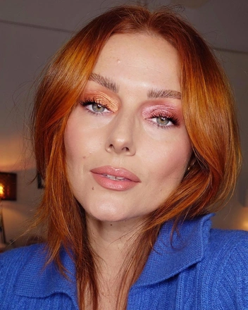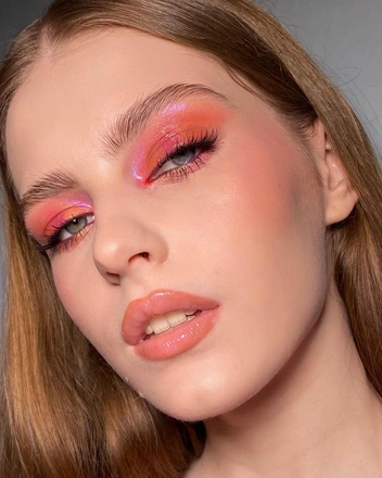 Если вы любите макияж поярче, то на 14 февраля выбирайте розовые и оранжевые оттенки, которые хорошо сочетаются друг с другом. Только матовые текстуры лучше не использовать: тени с шиммером смотрятся интересней и добавят глазам блеска. Чтобы макияж держался дольше, используйте в качестве подложки матовые тени или праймер.