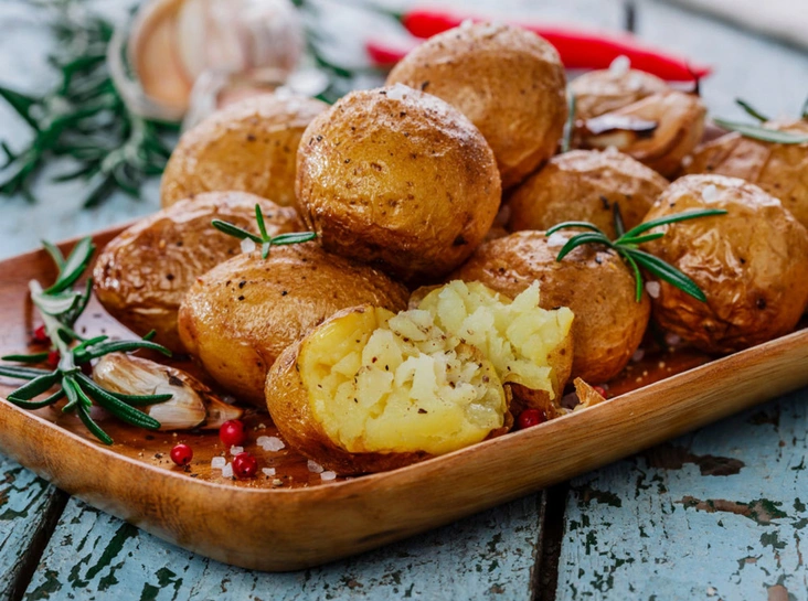 Одна крупная запеченная картофелина содержит 3 мг железа, большое количество витамина С и витаминов группы В, ответственных за клеточный метаболизм. Также картофель является хорошим источником калия и легко усвояемых минеральных веществ.