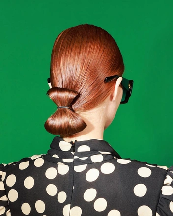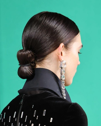 Эту прическу сделал популярной Сэм Макнайт, стилист по волосам показа Balmain осень-зима 2023. Выглядит такой пучок элегантно и необычно. Повторить прическу с показа точь-в-точь не получится: стилисты на показе делали ее в четыре руки. Однако можно сделать упрощенный вариант: сделайте низкий хвост на затылке, затем накрутите волосы на указательный и средний палец одной руки. Как только у вас останется только маленький хвостик, зафиксируйте волосы заколкой посередине так, чтобы получился бант.