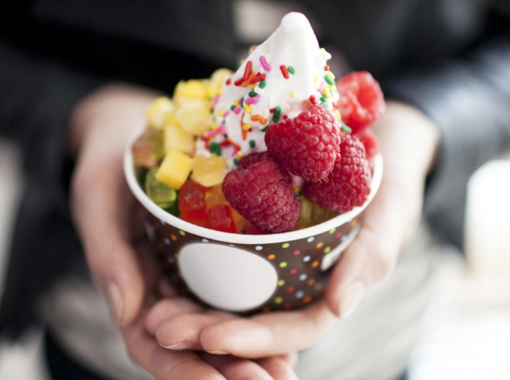 Уверены, вы, так же как и мы, любите заканчивать обед или ужин чем-то сладким. Нам кажется, что именно эта последняя нота передаст нашему организму сигнал стоп, «можно больше не есть». Меж тем, все как раз иначе. Мало того, что это пустые калории, так они еще и содержат сахар, которые, как вы знаете, лишь раззадоривает чувство голода. Замороженный йогурт получил среди поклонников здорового питание одобрительное звание диетического мороженого, но надеемся, что теперь вы понимаете, что он ничем не лучше пломбира.