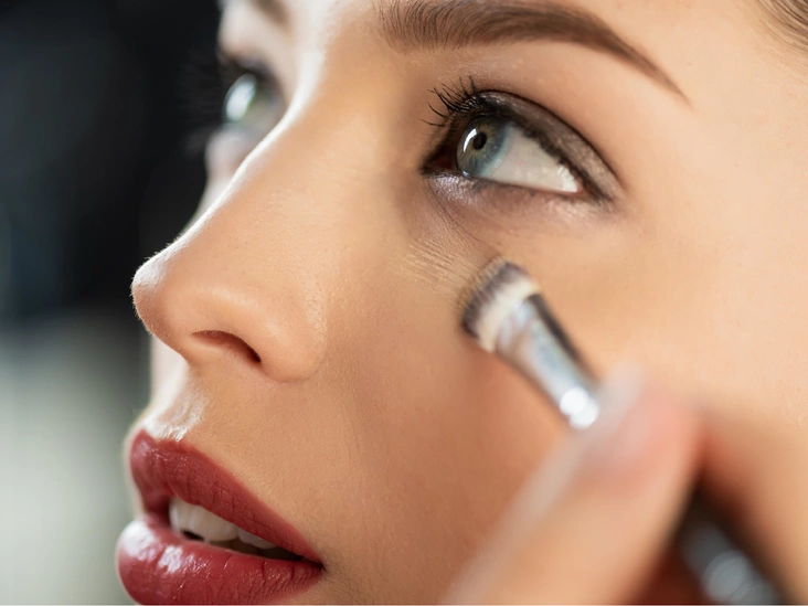 Если зашли с тенями не туда или нанесли слишком много пигмента, растушевать его поможет пудра. Наберите средство на чистую кисть и пройдитесь по границам. Пудра сделает переход более мягким, а тени — полупрозрачными.