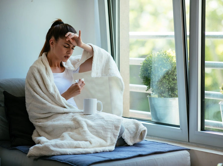 - Иногда проявления адаптации организма к новому климату, действительно похожи на простуду: повышается температура, появляется насморк, першение в горле, озноб, слабость.