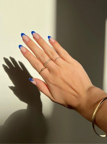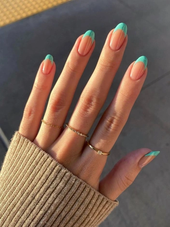 Френч в аквамариновом исполнении — это эффект свежести, которую будто бы только что принес океан. Кончик ногтя окрашен в насыщенный голубой оттенок, а база остается прозрачной или нюдовой. Такой френч выглядит мягко, но при этом добавляет характер образу. Особенно хорош для офиса, отпусков и легких повседневных образов. Он придает рукам легкость, а цвет — чистоту.