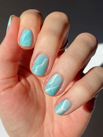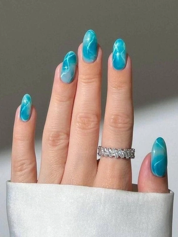 Этот вариант еще называют «классический аквамарин» — маникюр, в котором на молочной или прозрачной базе рисуются разводы морской волны, как будто это вода, застывшая в движении. Результат впечатляет: ногти смотрятся как настоящий арт-объект. Особенно хорош на миндальной форме средней длины. (читайте также: Красные королевы: судьба самых ярких советских манекенщиц)