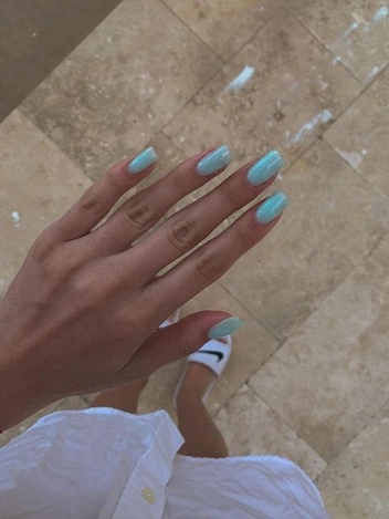 Аквамарин стал логичным продолжением тренда на свежее, «прохладное» настроение в образе. Он подчеркивает загар, делает кожу светлее, а руки — ухоженными. И если весной на пике были фисташковый и молочный, то сейчас — время цвета воды. (читайте также: Детский маникюр: о чем следует знать, поддавшись просьбам дочери)