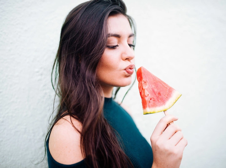 Арбуз действительно является одним из самых низкокалорийных продуктов: в 100 граммах мякоти содержится всего около 25-45 ккал. Уникальные свойства жидкости, содержащейся в арбузе, помогают выводу лишней воды, которая образуется в результате расщепления жира. Поэтому те, кто хочет сбросить вес, летом вполне обоснованно включают его в свой рацион. Особенно арбуз рекомендован гипертоникам. А вот женщинам склонным к гипотонии, которые худеют и тем самым урезают калорийность своего рациона, увлекаться им не стоит: арбуз является мочегонным и может стать причиной резкого снижения артериального давления.