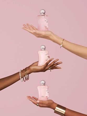 База держится на кашмеране, таитянском ветивере, белом кедре и ладане. Кашмеран дает ощущение дорогой ткани, ветивер и кедр добавляют сухую основу, а ладан — легкую дымку. За счет этого Delina не превращается в чистую конфету, а держит форму до конца дня.