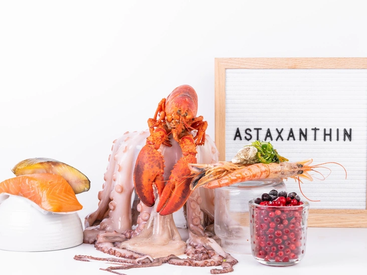Чтобы поддерживать норму астаксантина в организме, человеку нужно употреблять следующую категорию продуктов, содержащих это вещество: лосось, красная форель, краб, омар, креветки, лангуст, лососевая икра, морские водоросли. Но на ежедневной основе употреблять эти продукты довольно затратно, если вы живете не на средиземноморском побережье. Именно поэтому некоторые обращаются к помощи БАДов.