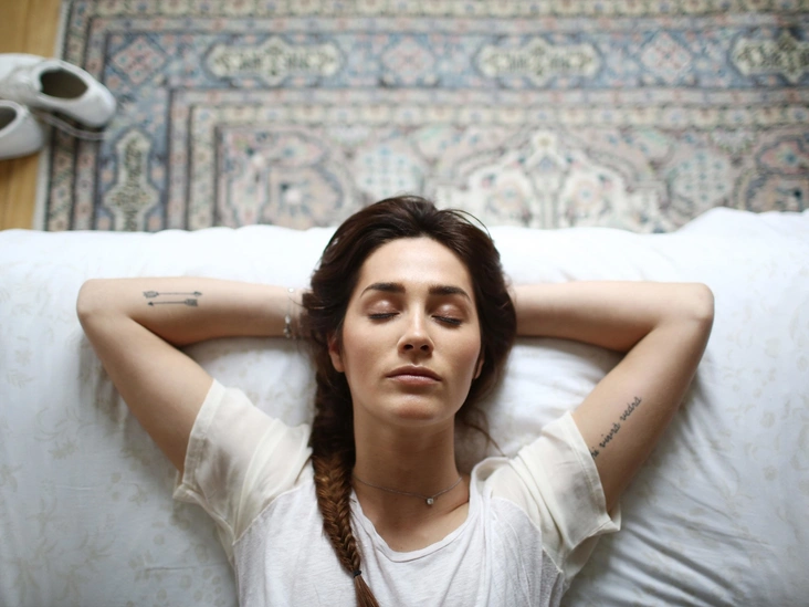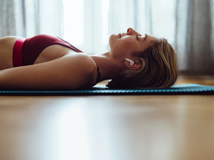 Расставьте ноги. Голову положите на низкую подушку, она должна быть немного приподнята. Слегка согните руки в локте, так, чтобы они свободно лежали вдоль туловища. Ладонями касайтесь пола. Вытяните ноги. Слегка разведите их и немного согните колени.