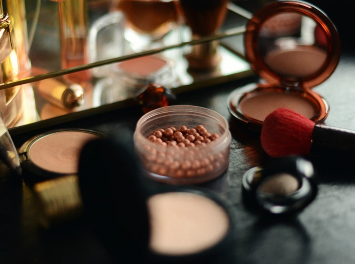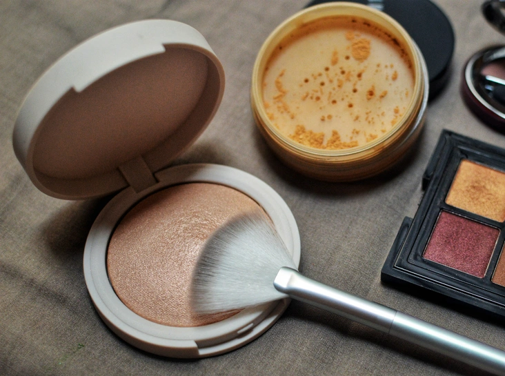 - Нанесение хайлайтера жидкой текстуры поверх пудры;