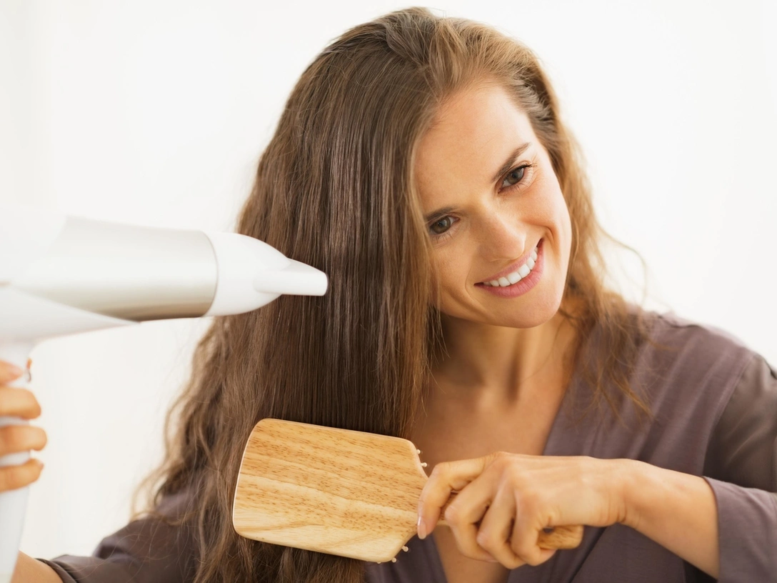 Щетку во время работы медленно опускайте от основания волос к кончикам.