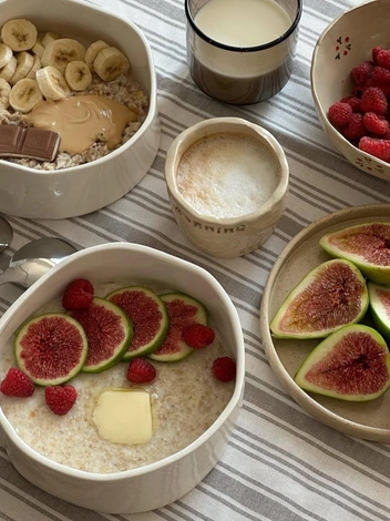 А вот ту же овсянку можно подать в качестве десерта после основного приема пищи, украсив ее ягодами, фруктами, орешками и семечками, чтобы насытиться, а заодно ускорить пищеварение и выйти из дома налегке. Еще хорош вариант соленой овсянки с пастрами из индейки.