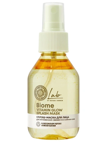 Сплэш-маски можно найти у бренда Natura Siberica в гамме Lab Biome. Всего их четыре: увлажняющая Aqua Boost, омолаживающая Lift & Firm, матирующая Pure Balance и придающая коже сияние Vitamin Glow. Последнюю мы и решили протестировать, ведь в начале весны продукты для сияния кожи как никогда актуальны. В составе сплэш-маски липосомальный гидролат алтайской облепихи (отвечает за восстановление и ровный тон) и аминокислоты (обладают регенерирующим действием).