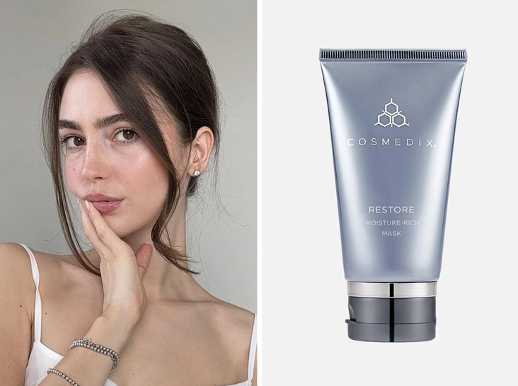 В составе Restore Moisture-Rich Mask от Cosmedix витамины, сквалан и масло косточек манго, которые глубокого увлажняют кожу и помогают разгладить мелкие и глубокие морщины. Также формула средства помогает бороться с чувством стянутости и шелушениями. У маски тающая кремовая текстура, которая не оставляет жирных следов и комфортно ощущается на коже. Как бонус — свежий фруктовый аромат с нотками цитрусовых.