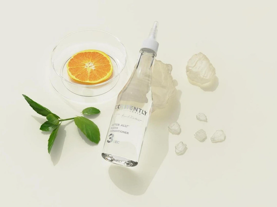 У кондиционера необычный формат — прозрачная жидкость, которая при контакте с водой трансформируется в кремовый бальзам. Высококонцентрированная формула содержит масла семян камелии и макадамии, которые делают волосы шелковистыми, а также ментол — оказывает охлаждающий и расслабляющий эффект на кожу головы.