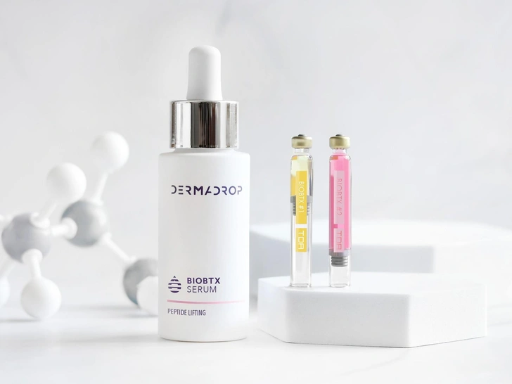 Антивозрастная сыворотка BIOBTX SERUM на основе пептидов создана как домашнее продолжение профессионального ухода DERMADROP TDATM. Формула помогает поддерживать результат аппаратной процедуры, продлевать эффект между визитами и мягко усиливать его за счет регулярного применения. Сыворотка подходит для ежедневного использования: при постоянном нанесении активные компоненты постепенно накапливаются в коже и работают на выравнивание текстуры и тонуса. Такой формат удобен, если вы проходите курс у косметолога и хотите сохранить достигнутый эффект дольше или выстроить более системный антивозрастной уход дома.