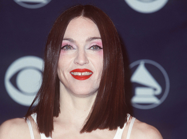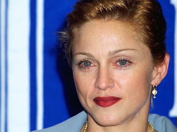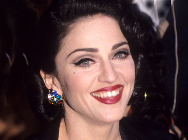 Еще один классический бьюти-хак – яркая помада. Любимые оттенки Мадонны варьировались в алой гамме – от классического красного до темного кораллового. Техника, которую визажисты использовали для нанесения помады (плотное покрытие из карандаша для губ и два слоя губной памады), автоматически увеличивала губы, придавая объем и освобождая от необходимости использовать филлеры для губ – кстати, они уже отходят в прошлое.