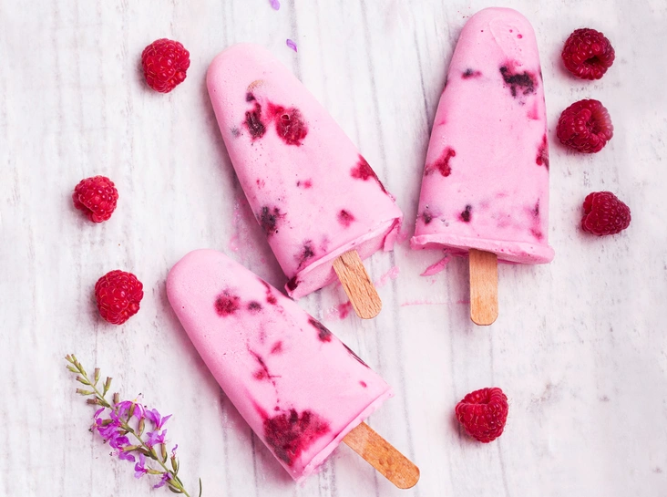- Аккуратно ввести в смесь малину и шоколад. Разложить по формочкам для мороженого.