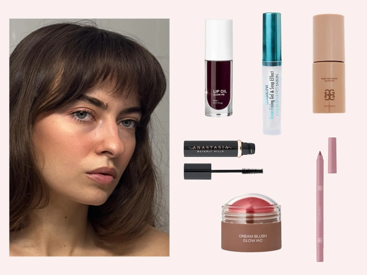 Далее наношу абсолютно мастхэвные кремовые румяна от Glow me. У меня есть три оттенка: sangria, terracotta и garden berries. Но мой любимый и трендовый оттенок в этом сезоне — sangria. Расход у румян очень экономичный. Я тушую их пальцами, что тоже супер удобно. Румяна наношу на скулы, спинку носа, немного на веки и на губы для придания оттенка. Получается супер свежо, в стиле майской розы. Ресницы крашу тушью от Anastasia Beverly Hills.