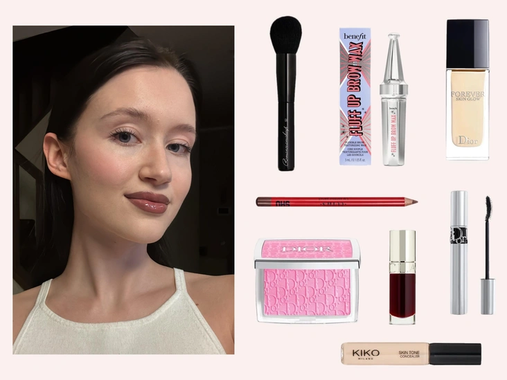 Свой дневной макияж я начинаю с тонального крема Dior forever skin glow в оттенке 0N. Наношу его спонжем вбивающими движениями с нижней трети лица. Далее работаю консилером Kiko Milano skin tone concealer в оттенке 02. Следующий этап — нанесение румян. Мне знакомы основы маркетинга, но это не помешало мне стать его жертвой — так что нашумевшие в 2023 году Dior Backstage в оттенке Rosy Glow есть в моей косметичке. Надо сказать, что покупка себя оправдала: оттенок и правда подходит любому типу кожи, придает свежий розовый румянец и держится весь рабочий день. К слову о нанесении — я распределяю средство чуть выше линии скул, и немного прохожусь по зоне между бровью и веком для более яркого взгляда.