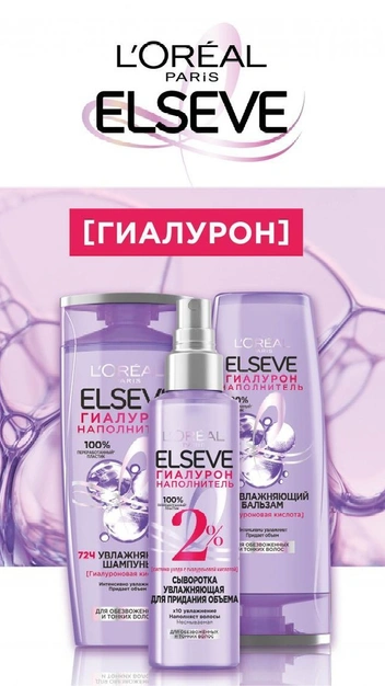 Настоящая инновация от бренда Elseve. Сыворотка для ежедневного применения в удобном формате спрея обеспечивает легкий несмываемый уход. Интенсивно увлажняет волосы, наполняя волокно волос, благодаря 2% системе ухода с гиалуроновой кислотой. Увеличивает диаметр волоса на 9% и дарит 10-кратное увлажнение в течение 72 часов.