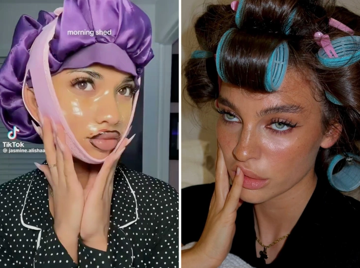Вечером — маски, тейпы, бигуди, жирный слой крема, шапочка и даже тейп на рот. Утром — эффектное «превращение»: сияющая кожа, аккуратные локоны, уверенный взгляд. Девушки снимают себя в этой гротескной «бьюти-брони» и выкладывают видео в сеть с посланием: «Чем уродливее ты выглядишь перед сном, тем горячее будешь утром».