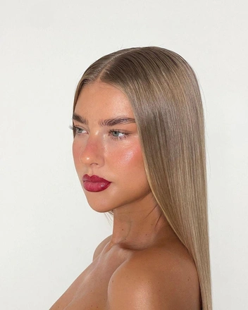 Красные губы не всегда требуют четкого контура, особенно, если это более приглушенные оттенки палитры. Эффект мягкого контура делает макияж более повседневным и сдержанным. Для приема вам понадобится матовая помада и кисть. Нанесите средство как обычно, а затем проведите кистью по контуру, чтобы сделать его менее резким и четким. Еще один способ повторить макияж — нанести помаду с помощью пальцев. Прием поможет создать эффект зацелованных губ со слегка смазанным контуром — выглядит такой макияж романтично и непринужденно.