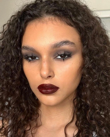 Если вы пока не успели обзавестись аксессуарами в любимом модницами вишневом цвете, для начала можно попробовать макияж губ в трендовом оттенке (читайте также: Сводят с ума: 5 оттенков помад, которые будут в моде осенью 2023). Выбирайте помаду с сатиновым или глянцевым финишем — сияющее покрытие сейчас в тренде. А перед нанесением воспользуйтесь карандашом для губ — темные оттенки не терпят неровный контур.