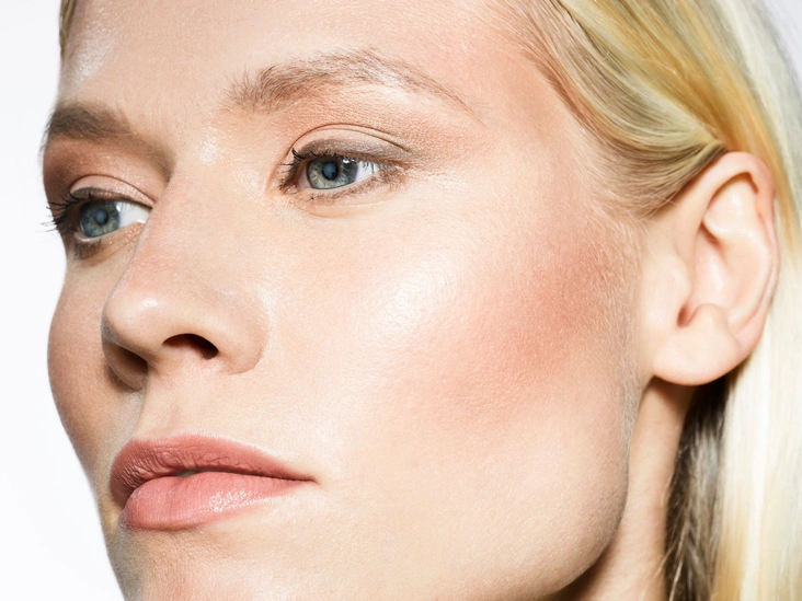 Чтобы добиться «дельфиньей» кожи с помощью макияжа, нанесите сухой или жидкий хайлайтер на выступающие части лица — скулы, подбородок, переносицу и кончик носа. Лоб и зоны вокруг носа лучше, наоборот, заматировать. Сам хайлайтер не должен содержать больших частиц глиттера — идеально, если он будет давать естественное «мокрое» сияние.