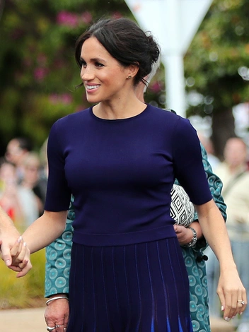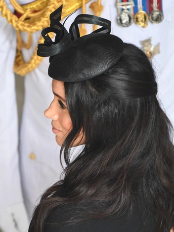 Меган нашла и другой способ внедрить обязательные для королевской особы головные уборы в свой гардероб и при этом не отказываться от своих любимых легких локонов. Во время визита в Австралию Сассекская предстала в небольшой черной шляпке, прикрепленной к легкой бабетте с романтичными распущенными локонами.