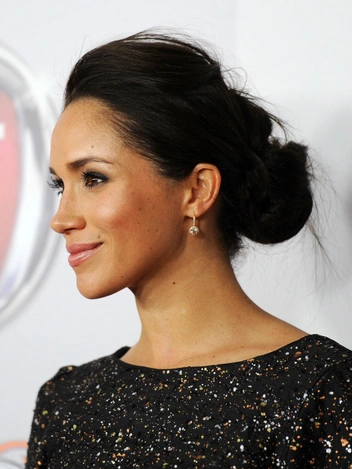 Презентуя пятый сезон сериала «Форс-мажоры» в родном Лос-Анджелесе вместе с телеканалом USA Network, актриса появилась в отеле Sheraton Los Angeles Downtown в удачном тотальном черном комплекте, с небрежной укладкой с боковым пробором и макияжем в нейтральном стиле. Позже, когда она выйдет замуж за принца Гарри, Меган сделает пучок своей фирменной укладкой, но в нем уже никогда не будет такого художественного беспорядка.