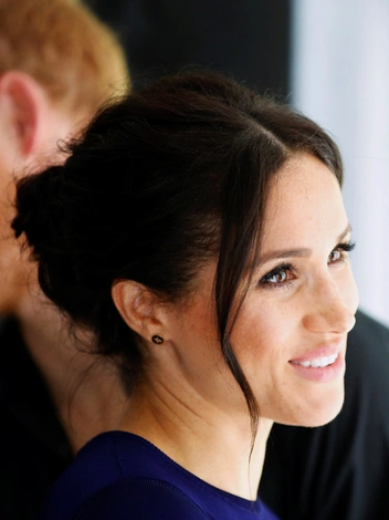 Фирменной укладкой Меган во время ее пребывания во дворце стал так называемый «небрежный пучок». Сассекская убирала волосы назад, не стремясь к абсолютной симметрии и позволяя прядям выпадать из прически. Ее коротко остриженные пряди у лица при этом создавали дополнительные линии, подчеркивающие форму лица герцогини. С подобной укладкой Меган появлялась и после ухода из королевской семьи — например, в видео, посвященном ее 40-летию (читайте также: «Шут Гарри и королева Меган»: что не так с новым видео герцогини Сассекской).