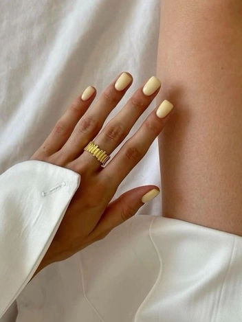Близкий к мягкому банановому оттенку, теплый крем. Он вызывает комфорт и доверие: как домашнее гостеприимство, но в формате бизнеса. Идеален для контактных переговоров, когда важнее расположение, нежели статус. Этот маникюр позволяет вам не просто выглядеть привлекательно, но и вызывать эмоциональный фон доверия — важный компонент денежного потока.