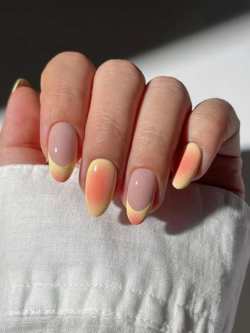 Переход от нежно желтого к персиковому и нежному розовому: этот маникюр как теплое прикосновение зари. Он ассоциируется с мягким подарком судьбы — бонусом, встречей или удачным совпадением. Яркий, эмоциональный и притягательный, особенно подходит для творческих сфер или когда хочется получить неожиданный приятный результат.