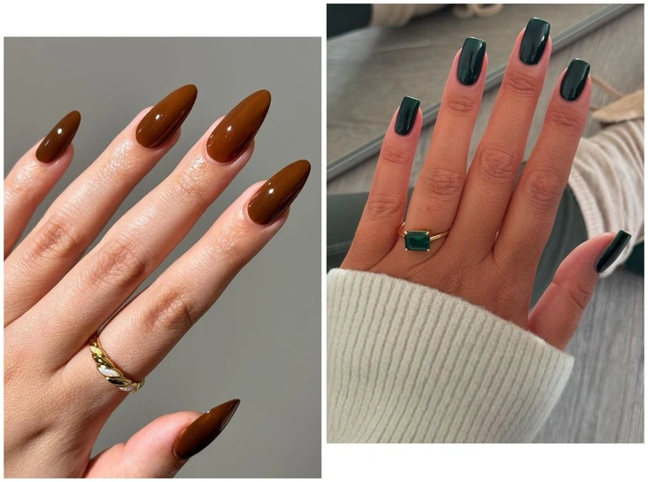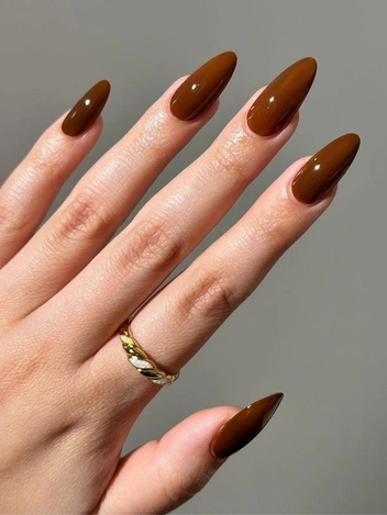 Если каким-то образом этот оттенок обошел вас стороной осенью, обратите на него внимание в декабре. Коричневый маникюр актуален в любой сезон. Кроме того, темный шоколадный оттенок идеально вписывается в концепцию «тихой роскоши» — смотрится дорого, но не кричаще. В последнее время он стал для многих девушек более яркой и необычной заменой нюду.