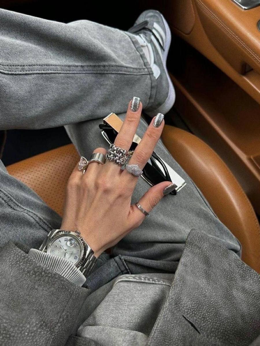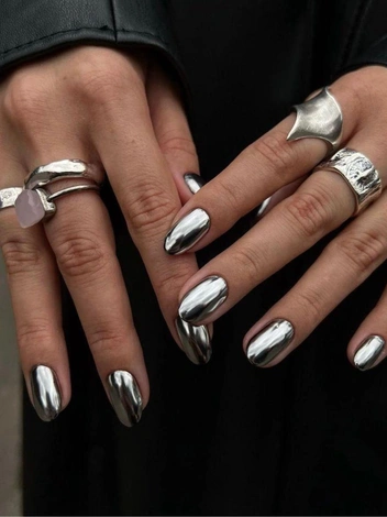 Серебряный металлик в феврале связан прежде всего с темой упорядочивания финансовых процессов. Денежный маникюр на февраль 2026 в этом оттенке часто выбирают в периоды, когда важно навести ясность в расходах, договоренностях и рабочих вопросах. Холодное серебро ассоциируется с расчетом, цифрами и точностью, поэтому такой маникюр хорошо поддерживает ситуации, связанные с планированием, обсуждением условий и принятием взвешенных решений.